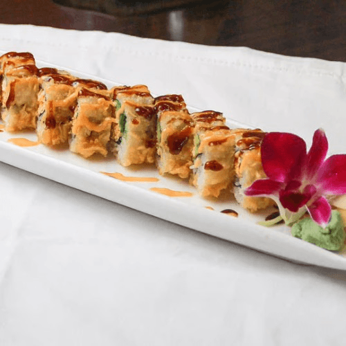 Deep fried crab, tuna, salmon, avocado, cream cheese, sweet chili sauce