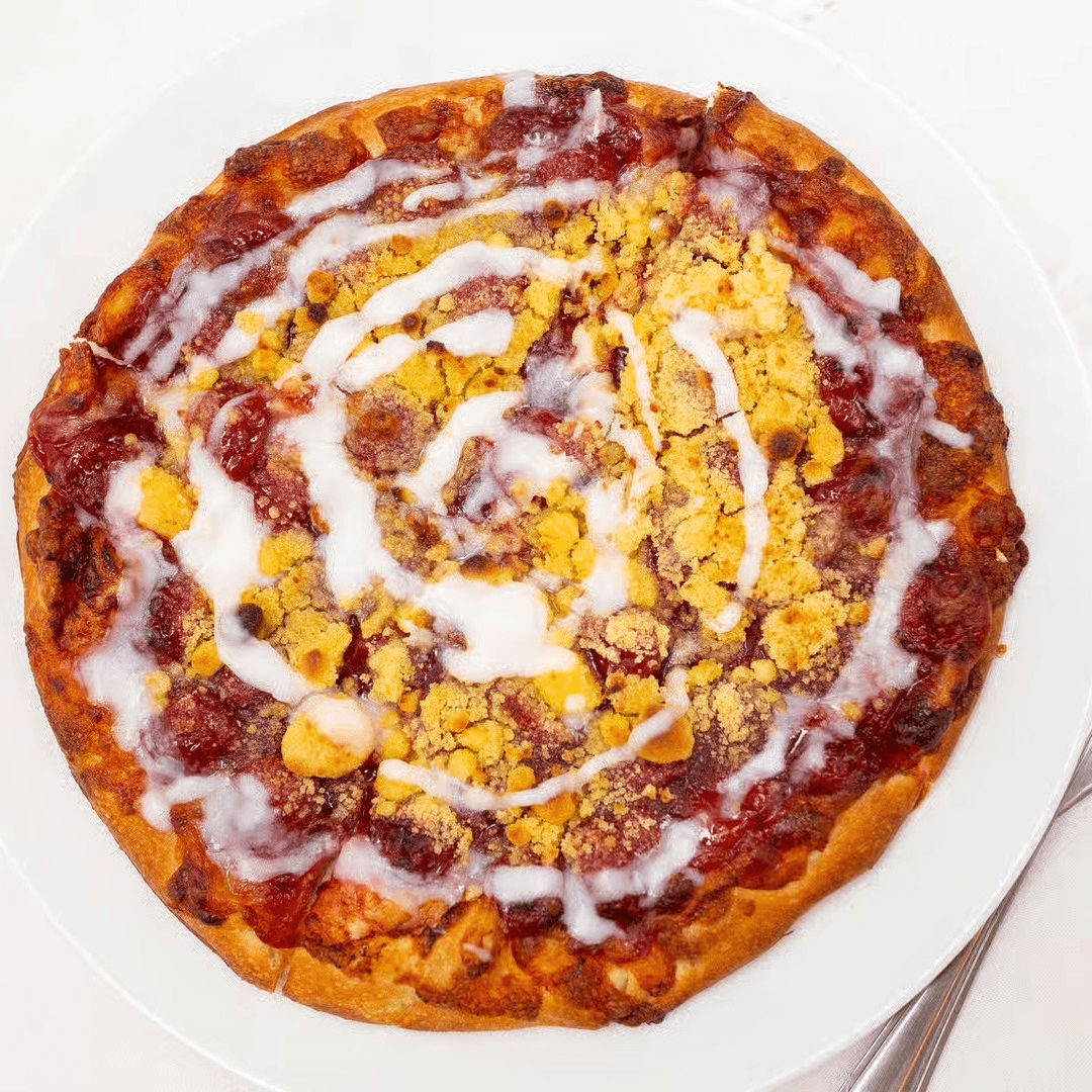 Try our signature dessert pizzas available in apple or cherry toppings.