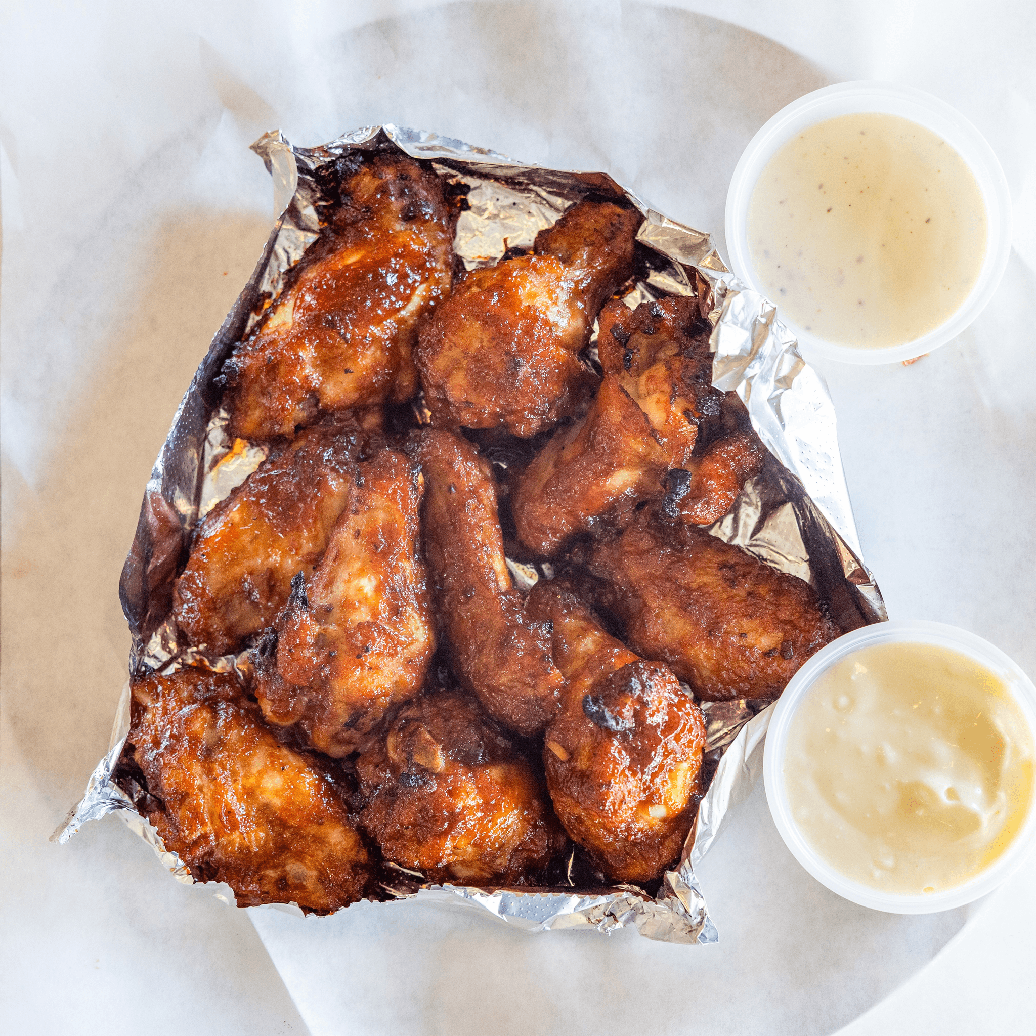 Bone-in- hot, BBQ, sweet chili, Italian style. Served with ranch or Blue cheese.