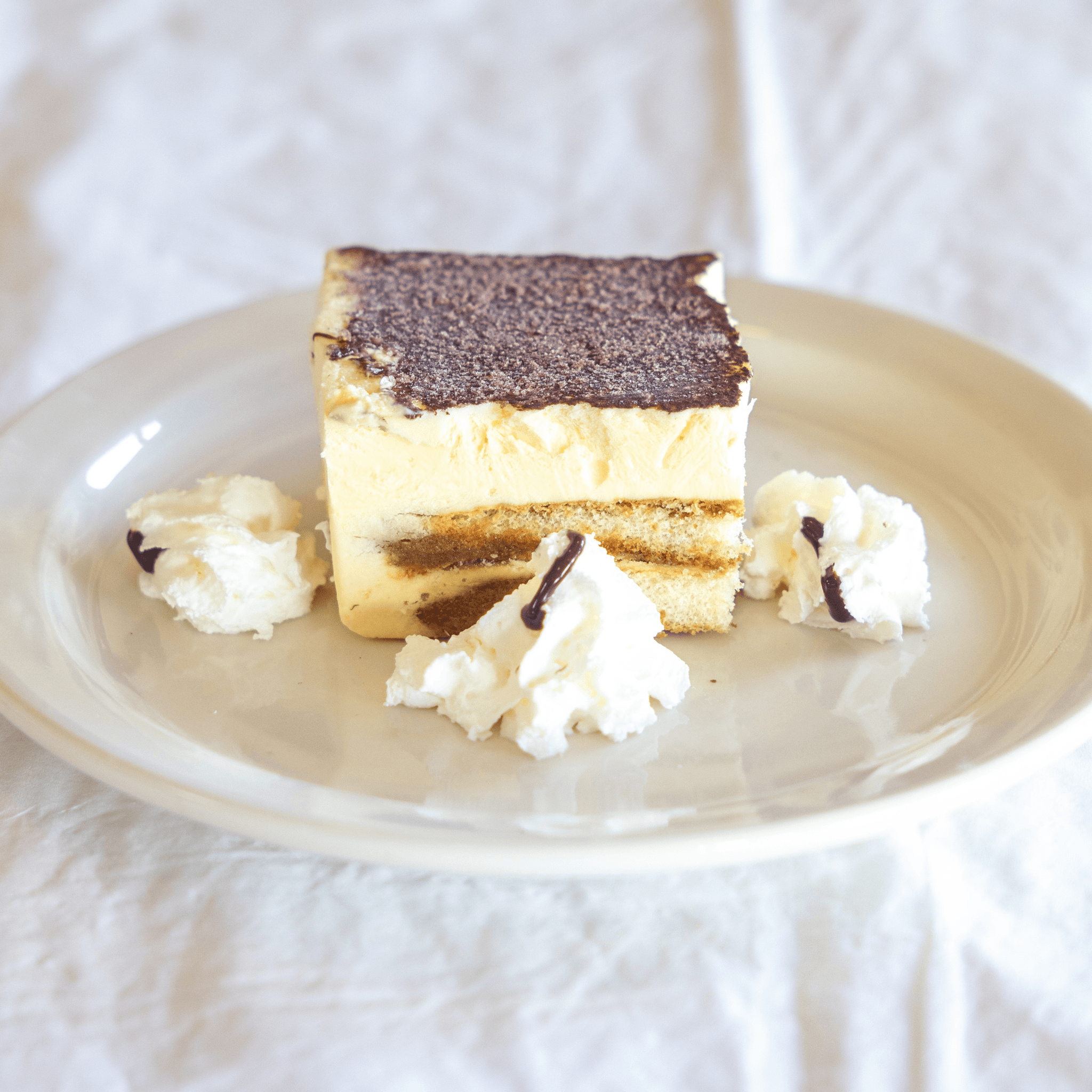 Mascarpone custard layered with whipped cream, coffee and rum soaked lady fingers
