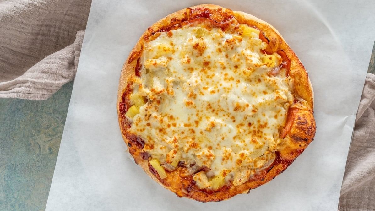 Canadian bacon, chicken, onion, pineapple, bbq sauce